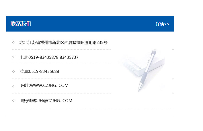 傳真:0519-83435688    郵編:213135    網址:WWW.czjhgj_com.gxsltz.com    電子郵箱:JH@czjhgj_com.gxsltz.com
